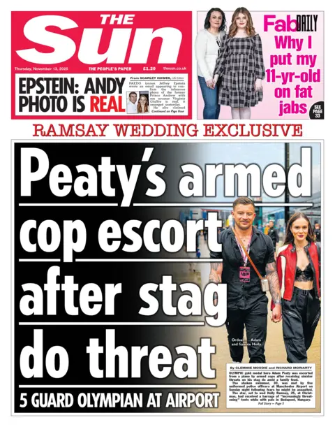 Finally, the sun focused on a “Ramsay Clieglusive Exclusive” while reporting that Olympian Adam Peaty was given a corner by the Police at the first wedding of Holly Ramsay. The pair are set to tie the knot at Christmas.